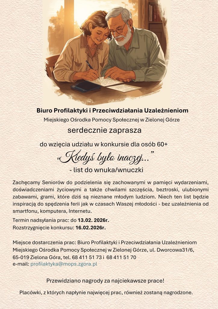 Ogłaszamy konkurs dla zielonogórskich instytucji wspierających seniorów pn. „Kiedyś było inaczej…” – list do wnuka/wnuczki
